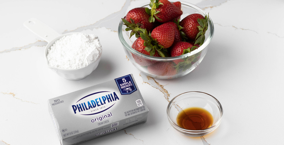 Fresh strawberries stuffed with a light and airy cheesecake filling